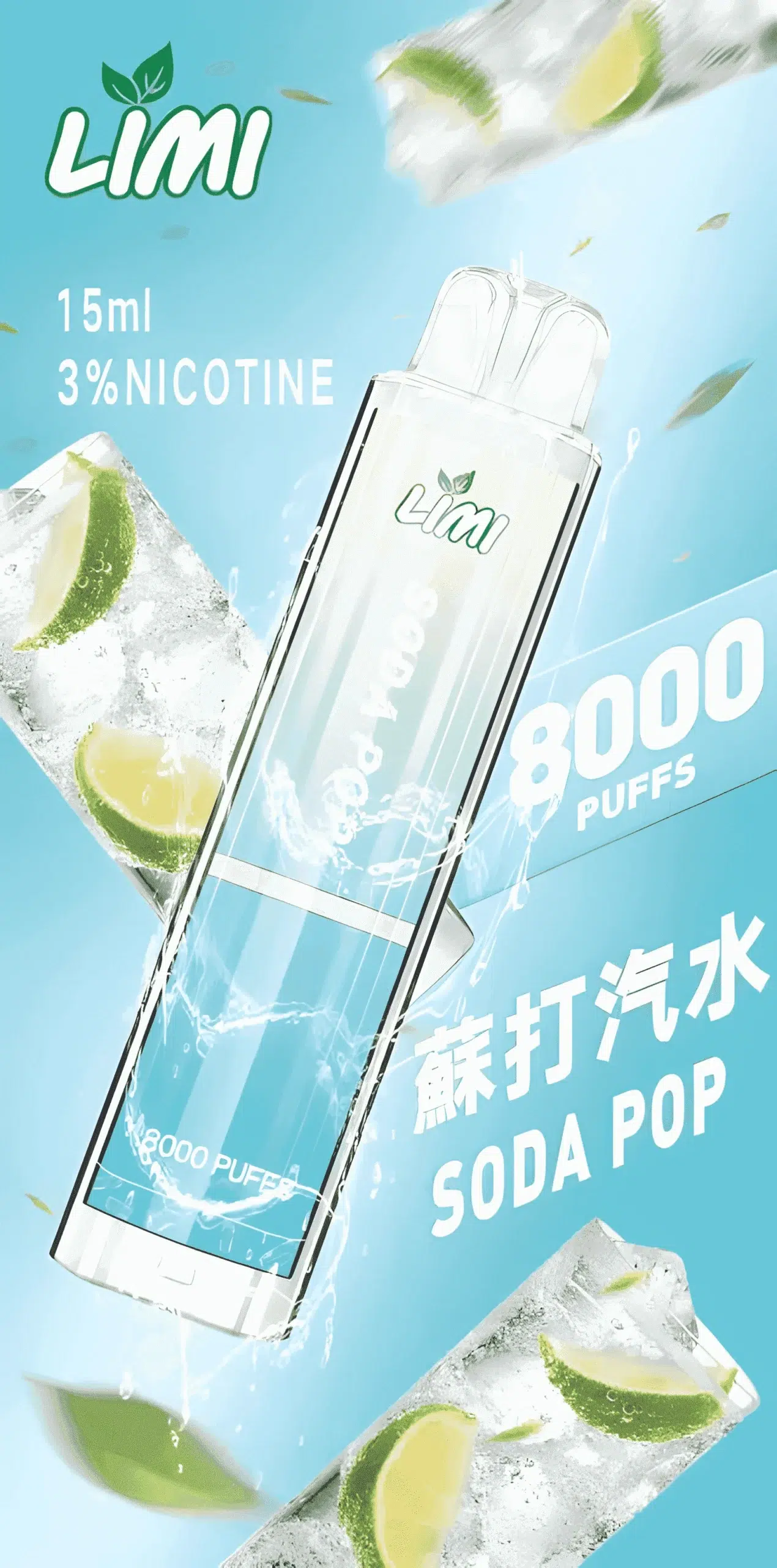 Limi 8000 Puffs 拋棄式電子煙 底部七彩發光一次性煙桿 711到付
