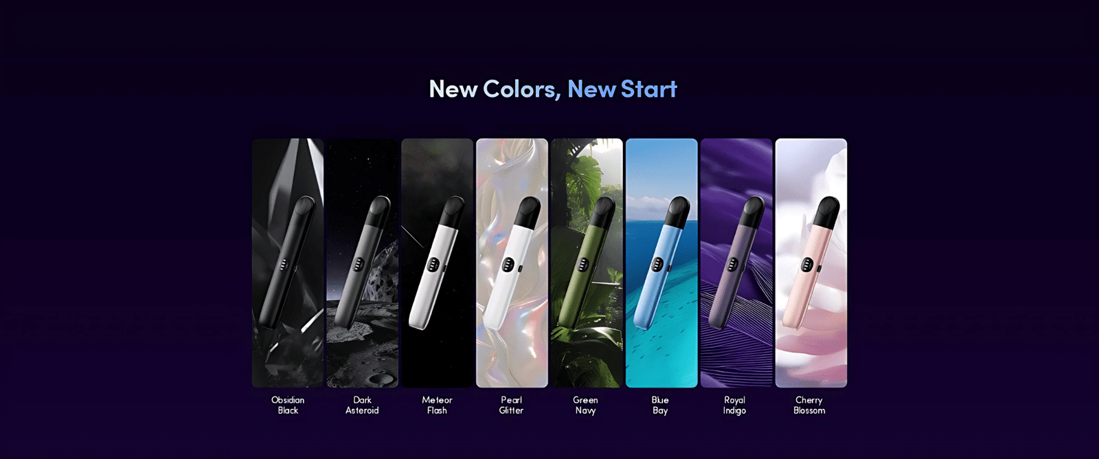 A:外型簡約輕巧(約 40g),四色選擇(如瑪瑙黑、流光白等),磁吸煙彈搭配防漏技術設計細膩