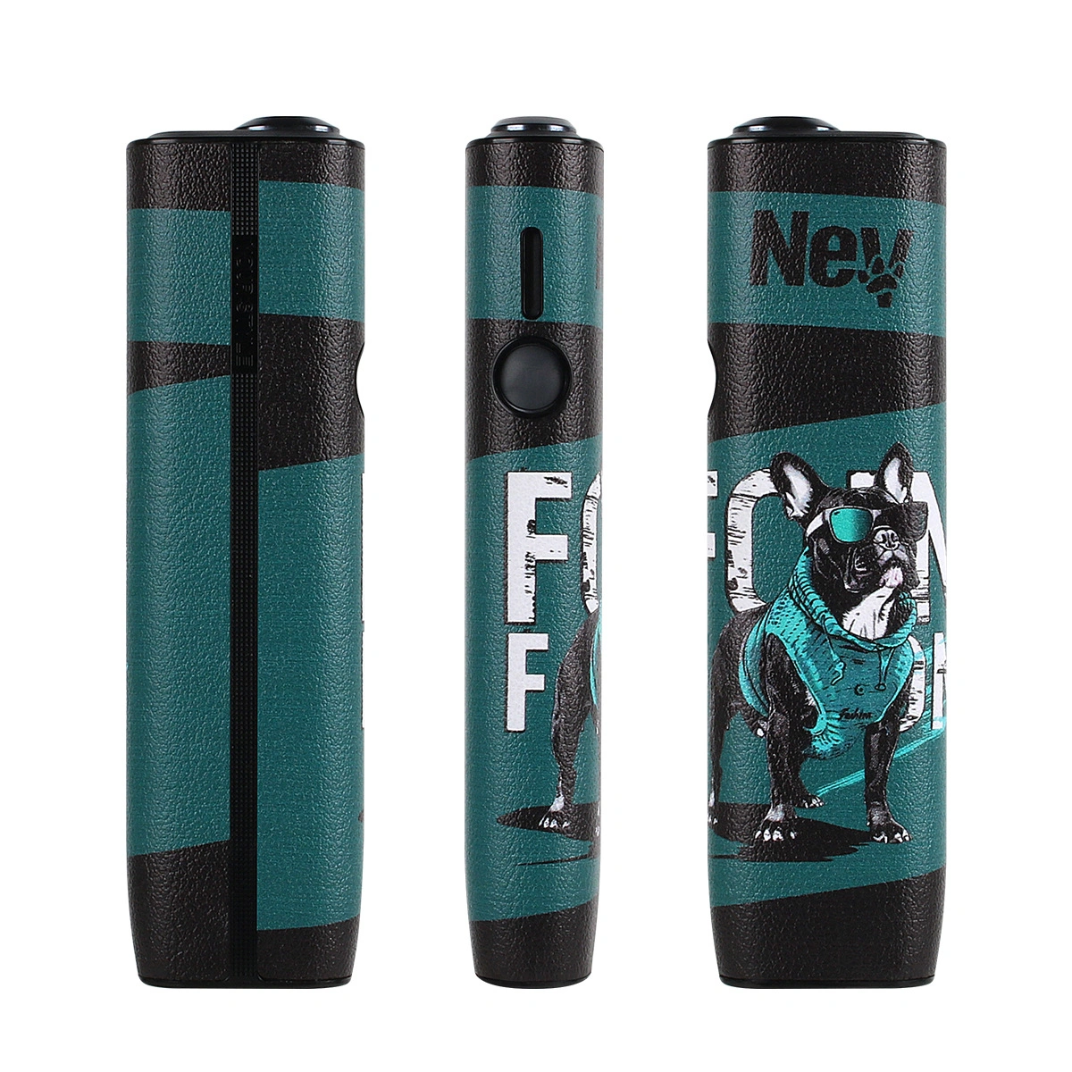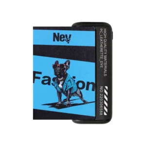 核心圖案是極具人氣和時尚感的法國鬥牛犬(French Bulldog)。這些法鬥圖案被賦予了擬人化的潮流風格,例如穿著西裝、戴著墨鏡,搭配醒目的標語(如圖中的 FASHION),使配件充滿幽默感和前衛感。