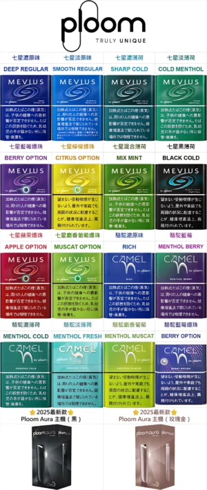 Mevius Deep Regular適合菸草純粹派,Sharp Cold冰感強勁解暑;Camel Menthol Fresh則溫和入門,Berry Option果香迷必收。無論哪款,都能發揮Ploom Aura無縫技術的極致風味。